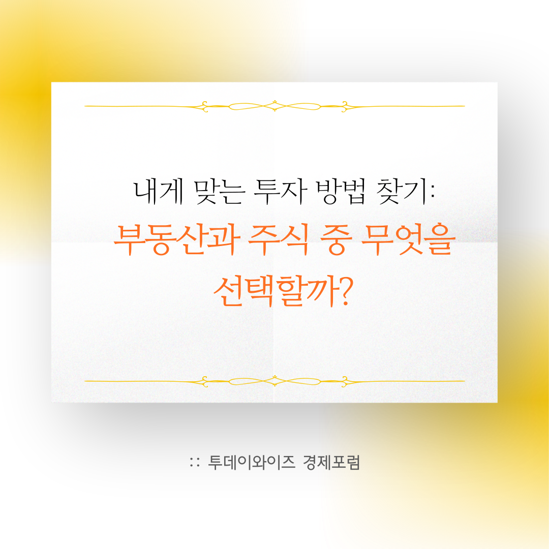 내게 맞는 투자 방법 찾기: 부동산과 주식 중 무엇을 선택할까? 🤔