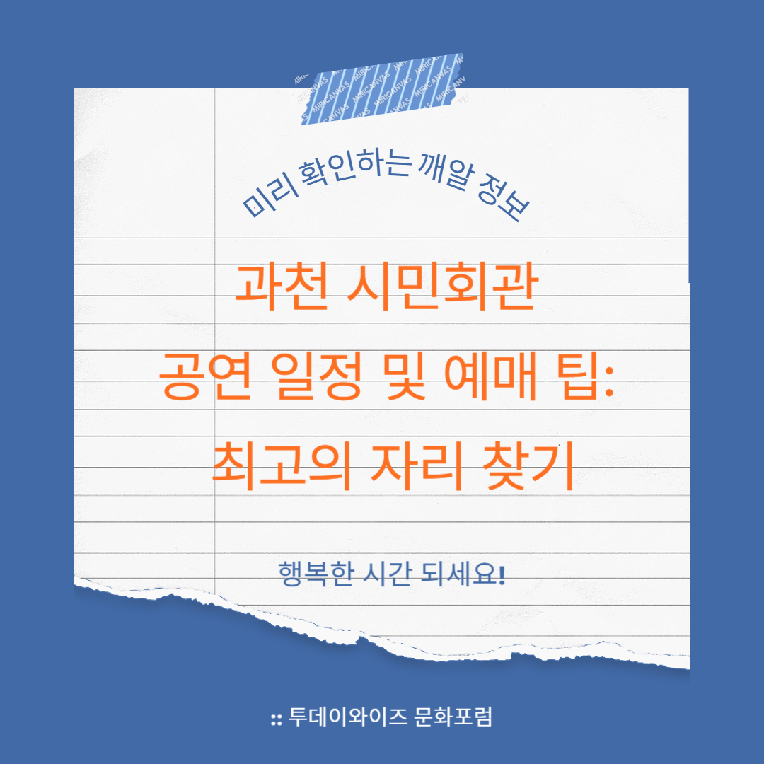 과천 시민회관에서 열리는 다양한 공연을 관람하고 싶으신가요? 🏛️ 이 글에서는 공연 일정을 확인하고, 최고의 자리를 확보할 수 있는 예매 팁을 알려드리겠습니다. 놓치기 쉬운 세부 정보와 함께 공연을 100% 즐길 수 있는 방법을 소개합니다.