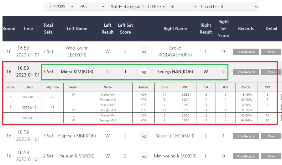 | NH농협카드 LPBA 챔피언십 22-23 64강 대진표 진출자 명단 (0) | 2022.12.30 |