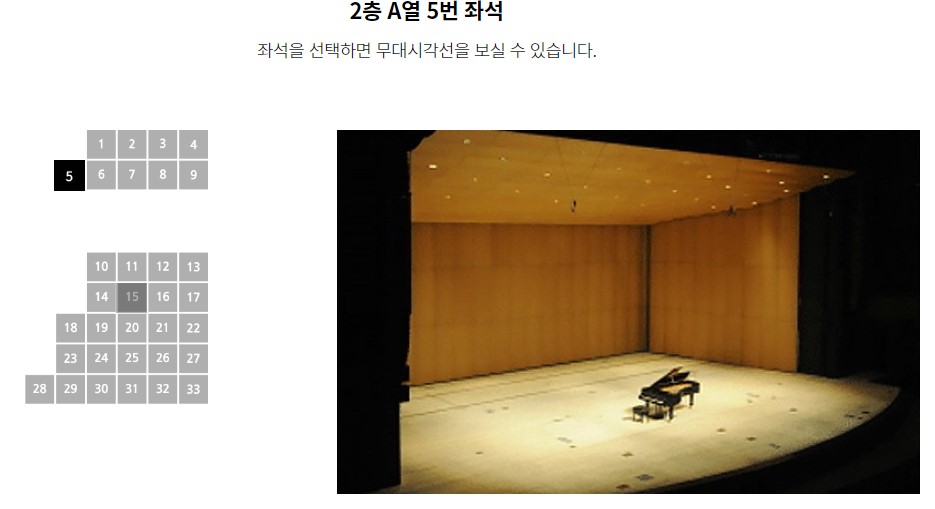 그 이유는 위의 그림에서와 같이 중앙이 아닌 좌우측 열의 자리에서는 무대 시각선이 틀어지기 때문에 정중앙이 아닌 사각으로 공연을 관람해야 합니다. 같은 열에서도 중앙에 가까운 좌석 자리가 무대 시각선이 좋습니다.