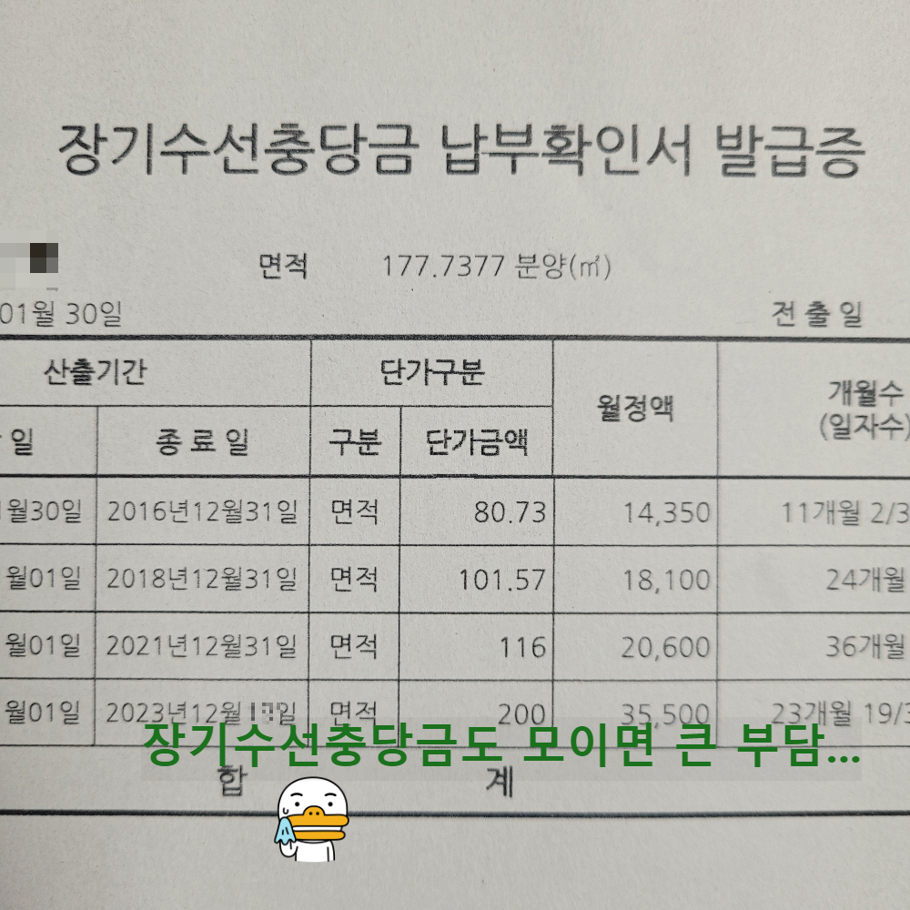 위의 장기수선충당금 납부 확인증은 집주인인 제가 경기도 성남시에 있는 공동주택에 이사를 가게되면서 세입자에게 지불해야할 금액의 합계입니다. 38~39평대 아파트인데 세입자가 8년간 거주하는 동안 납부한 장기수선충당금 금액이 217만원을 넘습니다.