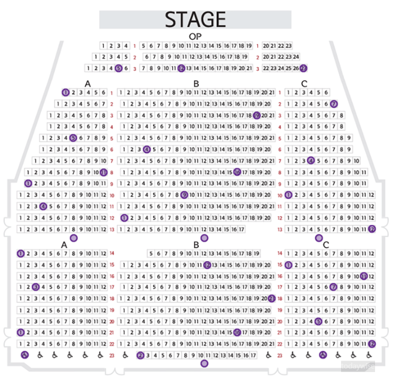 용인포은아트홀 1층은 위와 같이 A, B, C 블럭으로 각 블록마다 좌석이 배치되어 있습니다. 공연관람하기 가장 좋은 객석은 가운데 B블록 앞구역이 되겠습니다. 그다음 B블록 뒷구역의 앞열이 좋겠습니다. 혹시 A와 C구역을 예매한다면 가능한 무대 중앙에서 가까운 쪽 티켓을 예매하는 것이 좋겠습니다.