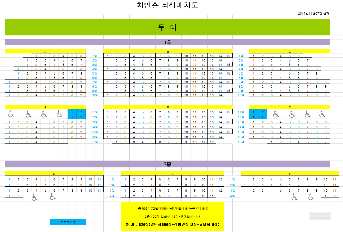 ■ 용인포은아트홀 1층 2층 좌석배치도